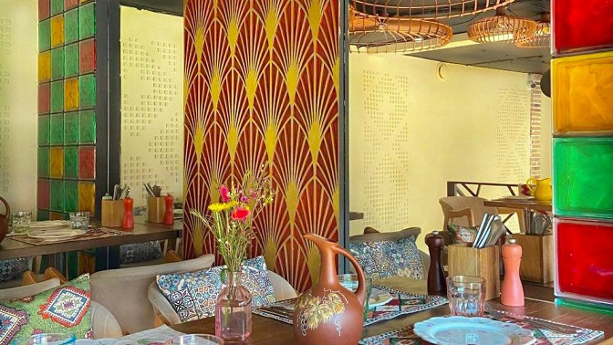 • Вас ждет зал с интересным интерьером и декором, который передает характер заведения и его атмосферу. В этой комфортной обстановке легко настроиться на спокойный отдых и на время забыть обо всех проблемах. Здесь вы сможете обсудить дела с коллегами, пообщаться с друзьями, провести время с семьей или устроить романтическое свидание. Вежливый персонал, быстрое обслуживание, большой выбор блюд и напитков — вы отлично проведете время.